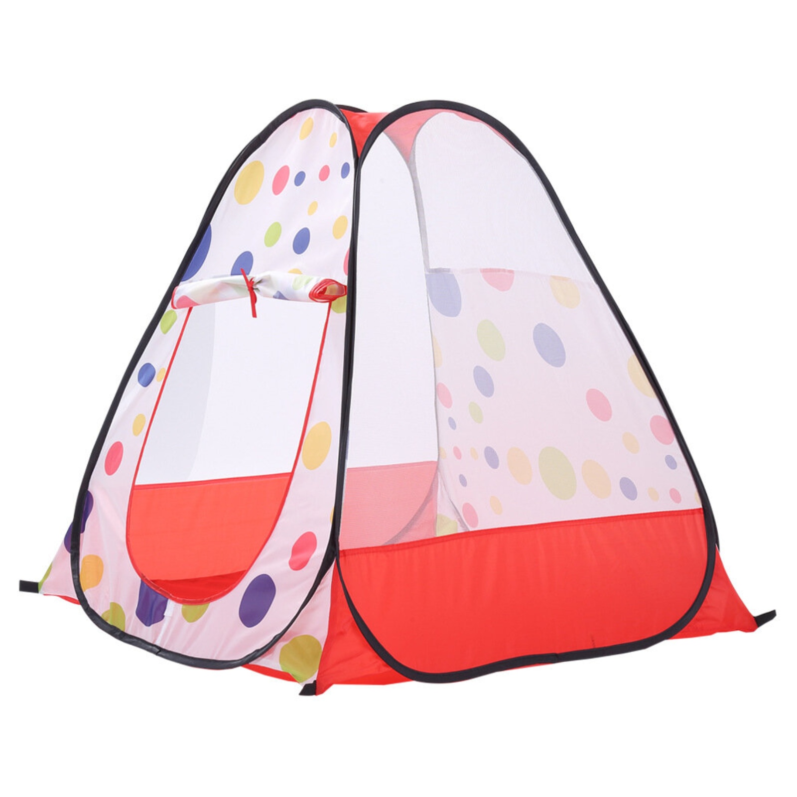 Detský stan Merco Dot sprostredkuje veľa zábavy všetkým chalanom aj dievčatám v pohodlí domova alebo aj vonku na záhrade. Stan s veselými farbami má štvorcový pôdorys a zvršok v tvare ihlana a zaoblenými rohmi. Každá zo strán základne má dĺžku 85 cm a jeho celková výška je potom 90 cm. Plášť stanu je vyrobený z priedušného polyesteru s jedným vchodom a dvoma stenami zo sieťoviny a jeho celková hmotnosť je iba 0,45 kg.