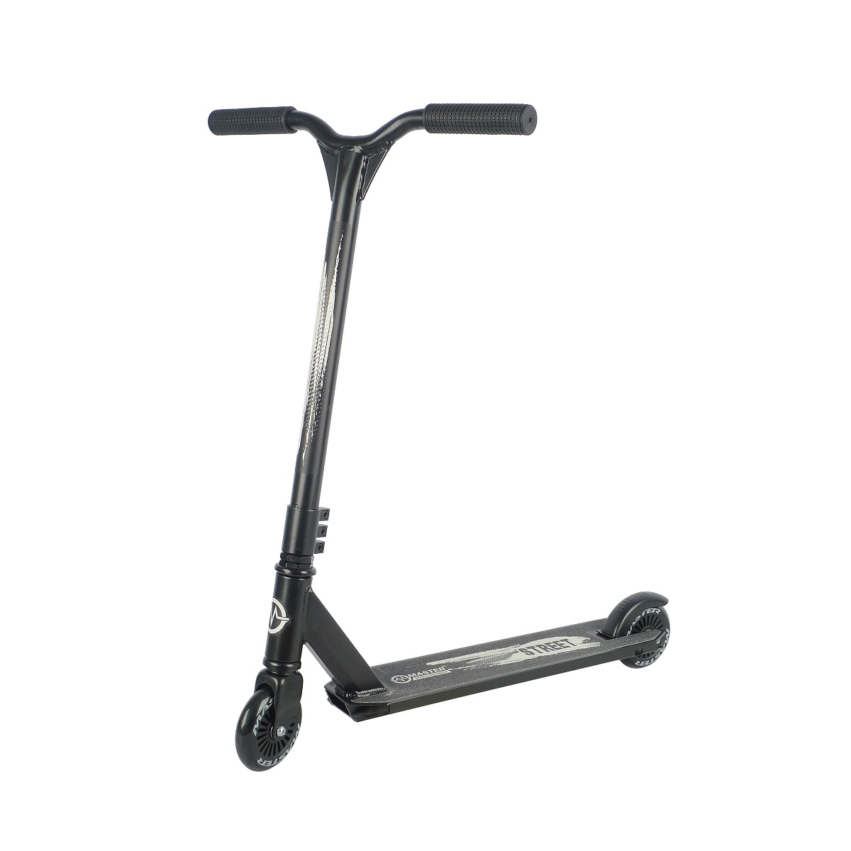 Master STREET je ideálnou kolobežkou pre všetky deti, ktoré si chcú užiť veľa zábavy. Vďaka svojej konštrukcii je vhodná pre jazdu a robenie trikov na ulici alebo v skateparku. Rám je vyrobený z hliníka, a preto je nielen pevný, ale tiež ľahký. Odolná konštrukcia pritom unesie až 100 kg. Kolobežka má špeciálne 360° riadidlá z chromovanej ocele v tvare Y. Má tiež drážkované TRP rukoväte, ktoré zaistia pevnejšie uchopenie ako bežne gumové rukoväte. Môžete sa spoľahnúť, že sa vám ani pri drsnej jazde nebude ruka šmýkať.