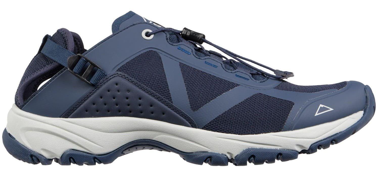 Prilnavosť Vysoká prilnavosť v náročnom teréne Pánske trekové sandále McKinley Boipeba M vhodné na outdoorové použitie s odvetranou pätou. Táto obuv sa vyznačuje skladateľnou časťou päty, prostredníctvom ktorej sa môže uzavretá topánka kedykoľvek premeniť na šľapku. Polstrovaná medzipodošva ponúka pohodlie pri chôdzi, rýchly šnurovací systém QUICKLACE ponúka praktické pohodlie. Vrchný materiál je extrémne priedušný vďaka sieťovinám a perforáciám na bokoch. Rýchle šnurovanie: QUICKLACE Priedušný zvršok so sieťovinou Materiál: sieťovina / PU / EVA / guma Podrážka: guma Materiál vložky: EVA pena Päta so zapnutím na sponu