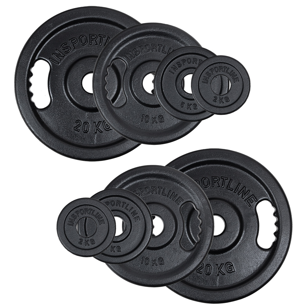 Liatinové kotúče inSPORTline Castblack OL 2x 2-20 kg sú kvalitne spracované a veľmi odolné kotúče pre posilňovacie tyče s priemerom nakladacej časti 50 mm. Povrch kotúčov je ošetrený špeciálnym práškovým lakom, ktorý zaručuje dlhú životnosť a predchádza rýchlemu opotrebovaniu. Vďaka ergonomicky tvarovaným otvorom môžete jednotlivé kotúče používať aj ako jednoručné činky. Budete tak mať viac možností pri plánovaní tréningu. Úchopy prídu vhod aj pri nakladaní kotúčov na hriadeľ, pretože sa s nimi lepšie manipuluje. Určite sa hodia do každej rozrastajúcej sa posilňovne – navyše za zvýhodnenú cenu!Technický popis: cenovo výhodná súprava olympijské kotúče z kvalitnej liatiny povrchová úprava proti opotrebeniu ergonomické úchopy možnosť použiť kotúč aj ako samostatnú činku počet závaží: 8 ks celková hmotnosť: 74 kg materiál: liatina priemer otvoru: 50 mm určené na domáce aj klubové použitie vhodné na posilňovanie s nakladacou činkou Súprava obsahuje: 2 x liatinový olympijský kotúč inSPORTline Castblack OL 2 kg priemer kotúča: 16 cm šírka kotúča: 19 mm 2 x liatinový olympijský kotúč inSPORTline Castblack OL 5 kg priemer kotúča: 23 cm šírka kotúča: 19 mm 2 x liatinový olympijský kotúč inSPORTline Castblack OL 10 kg priemer kotúča: 30 cm šírka kotúča: 30 mm 2 x liatinový olympijský kotúč inSPORTline Castblack OL 20 kg priemer kotúča: 39 cm šírka kotúča: 40 mm