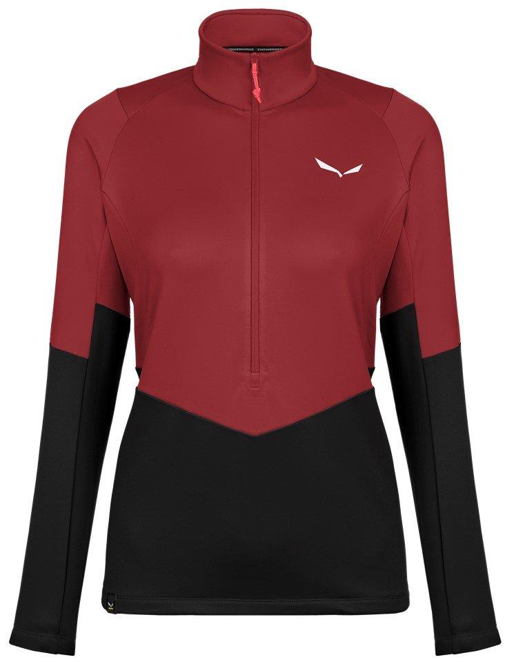 Strih Hrejivosť Vetruodolnosť Oblečenie jemne voľné okolo tela Vhodné pre chladnejšie počasie pri teplotách od 2 do 10°C Vhodné do veterných dní za slnečného počasia Dámska, mäkká, hrejivá fleecová mikina na polovičný zips ideálna pre horský trekking. Hrubšie zateplenie z 260 g/m² Polarlite fleecu má hladký povrch a vnútro utkané do mriežkovej štruktúry, ktorá zahrieva a zároveň zmenšuje objem. Mriežky navyše tvoria vzduchové kanáliky, ktorými môže ľahko pretekať vzduch zvnútra von a zlepšovať tak priedušnosť látky, ktorá je vďaka podielu elastanu krásne pružná a pohodlná. Ergonomické rukávy a spevnené podpazušie umožňujú neobmedzenú pohyblivosť a pohodlie, aj keď na sebe práve máte batoh. Zdvíhací golier proti vetru a elegantný strih regular fit len dotvárajú obraz ideálnej horskej strednej vrstvy. Produkt z radu Salewa Committed: okrem dodržiavania tých najprísnejších, zvonku auditovaných štandardov udržateľnosti a sociálnej zodpovednosti, mikina obsahuje viac ako 50% recyklovaného polyesteru, takže jej výroba šetrí zdroje aj energiu Tesne priliehavý stojatý golier so zipsom Špeciálna konštrukcia rukávov (klin) pre dobrú voľnosť pohybu Určenie: outdoor, turistika, trekking Rýchloschnúci materiál odvádzajúci vlhkosť 4-cestný streč Materiál: POLARLITE GRID 260 g/sqm (94%PL (58% recycled) 6%EA) Hmotnosť: 296 g (44/38)
