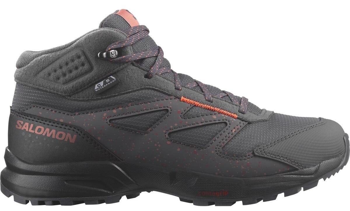 Prilnavosť Vodeodolnosť Odolnosť proti oderu Dobrá prilnavosť v každom teréne Obuv s nepremokavou membránou pre dobrú priedušnosť a odolonosť voči vode Povrchový materiál odolný voči odieraniu s pogumovanou špičkou Topánky Salomon OUTWAY MID CLIMASALOMON™ WATERPROOF sú určené pre mladých turistov, ktorí chcú objavovať prírodu a nekonečné dobrodružstvá v horách. Topánka OUTWAY Mid kombinuje nepremokavú ochranu a podrážku Contagrip® so skvelou priľnavosťou na všetkých rôznych terénoch s veľkým komfortom. Dĺžka po členky zabraňuje vnikaniu nečistôt do topánky a udržuje členky spevnené. Či už sa chystáte na ihrisko, lesnú cestu alebo na prechádzku po meste, topánky OUTWAY Mid sú vždy skvelou voľbou. Vďaka nepremokavej membráne, odolnej ripstopovej tkanine a chráničom špičky a päty budú mladé nohy chránené počas outdoorových dobrodružstiev. Materiál Contagrip® do každého terénu Pohodlné odpruženie a polstrovanie na všetkých strategických miestach pre trvalý komfort Moderný dizajn s farebnými detailmi Hmotnosť (g)255 g Drop8 mm